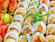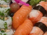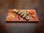 8x uramaki Iro (łosoś, węgorz, labraks, tuńczyk, ogórek, krewetka w tempurze, marynowana rzodkiew/ogórek )