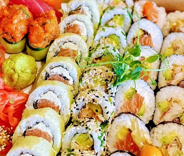 4x uramaki (tatar z łososia i awokado na zewnątrz)