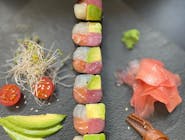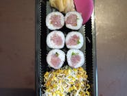 4x uramaki tuna (rzepa, tykwa, serek Philadelphia, ogórek , łosoś, na zewnątrz tuńczyk)
