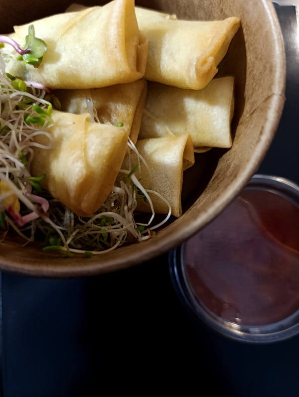 8x Spring Rolls (łosoś, rukola, serek, rzepa, ogórek, tykwa w płatku ryżowym) -
